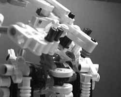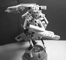 参考までにのおおまかレシピ ・バイオニクル白足パーツ×2、 ボールジョイントリフトアーム(短)×3、 ボールジョイントリフトアーム(片ボール)×2、 白レーダー×3(コパカ) ・バイオニクル白フェイスパーツ×2(トゥラガ・ヌジュ) ・ロボライダー系ホイールハウジング×2(フロストロボライダー) ・白フレキシブルパイプ、白テクニックパネル、他たくさん(ストームトルーパー) ・テクニック旧タイプの軸止め(ジグザグ付き・入手難)×1 ・他に接続パーツ等、こまごまと だいたい前の斑鳩を作った時の余りでできてます。何とかなるもんだ。 |