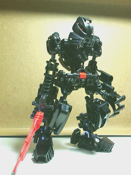 シンプルイズなんとか。で基本ラインを活かしつつ ニポンジン好みっていうか自分好みのバランスに。 ていうか不良立ちが出来れば満足なんですが。 足首の延長はオレニクルサイトの有井氏のバイク合体の奴を 参考にしつつ、可動ポイントをもう1段下にも設けて自然っぽく。 首の接続にはアングルコネクターの3番を使うとちょっと うつむき加減にできてナイス不良立ちへの第一歩です。 今回はこれを押し進めてノーマルレゴのカクカクヒンジを使用、 あんまりどうしようもないけど首の上下角を変更可能に。 パーツはとにかく黒い奴を、って事でバイニク敵のサソリとかハエ、 あとダースベイダーにカバヤアルファチームのパーツを使いつつこまごまと。 シンプルとかいいつつ重量はノーマル状態のトーアの 倍ぐらい重かったりして、ロボット的にデザインの差異を 出しやすくするにはやっぱり密度上げんとなあと思いましたり。 てゆーかバイオニクルはまるで先行者だ、つう一見さんの 意見もまあしょうがないかなあと。 |